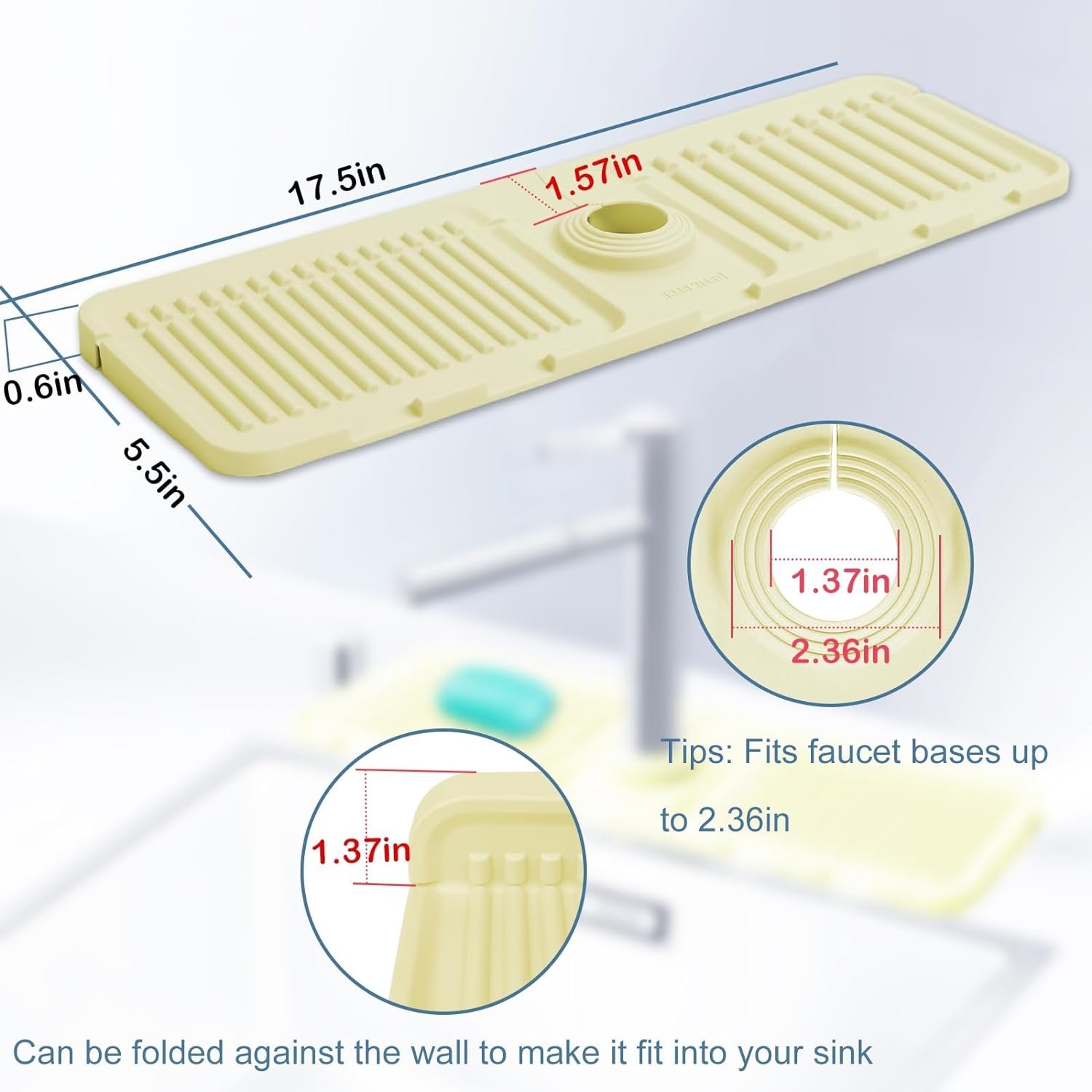📦 Package Includes: 1 * Faucet Splash Guard Draining Tray Mat